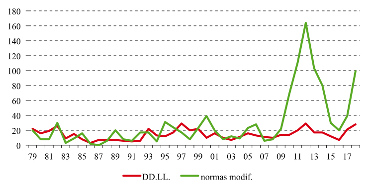 entre 1979 y 2018, el más largo posible bajo la vigencia del art. 86 CE El análisis realizado por Padrós Reig ( Padrós Reig, C. (2009). Producción legislativa, estructura parlamentaria y cambio