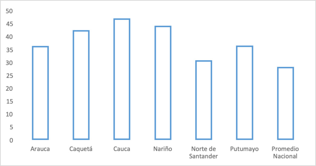 Fuente: elaboración propia con base en UNODC (UNODC (United Nations Office on Drugs and Crime). (2019). Colombia. Monitoreo de cultivos de coca 2018. Viena.2019).