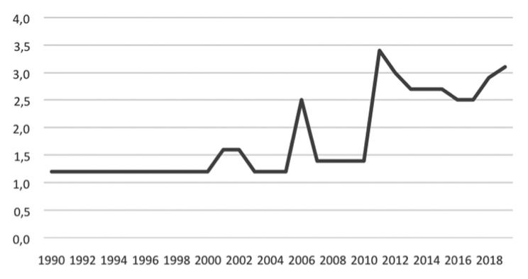 | Paraguay | 0,70 | 0,66 | 0,59 |