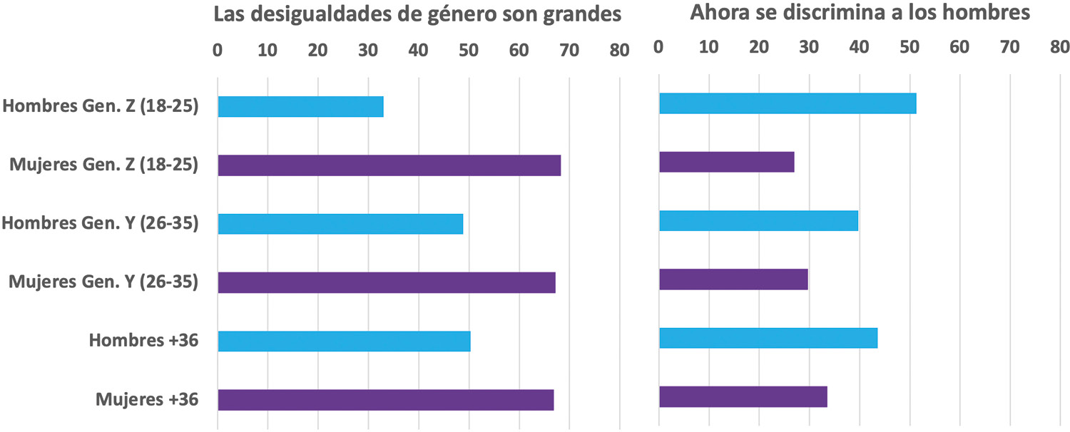 La politización de las cuestiones relativas al género y la sexualidad podría considerarse un factor relevante para explicar una mayor polarización. Si bien las generaciones previas a la generación Z han sido socializadas políticamente en valores liberales democráticos y la ampliación de los derechos sociales (donde se pueden encontrar aquellos relativos a la igualdad de género entre mujeres y hombres), los avances más recientes del feminismo podrían haber desencadenado una fuerte reacción social en una parte de la sociedad. Así, algunos autores (ver Abou-Chadi et al., 2021) sostienen que entre aquellos que han visto quebradas sus expectativas vitales en las últimas décadas, podría haber cristalizado un rechazo al feminismo imputando a éste los efectos en sus experiencias laborales y de ausencia de ascenso social.