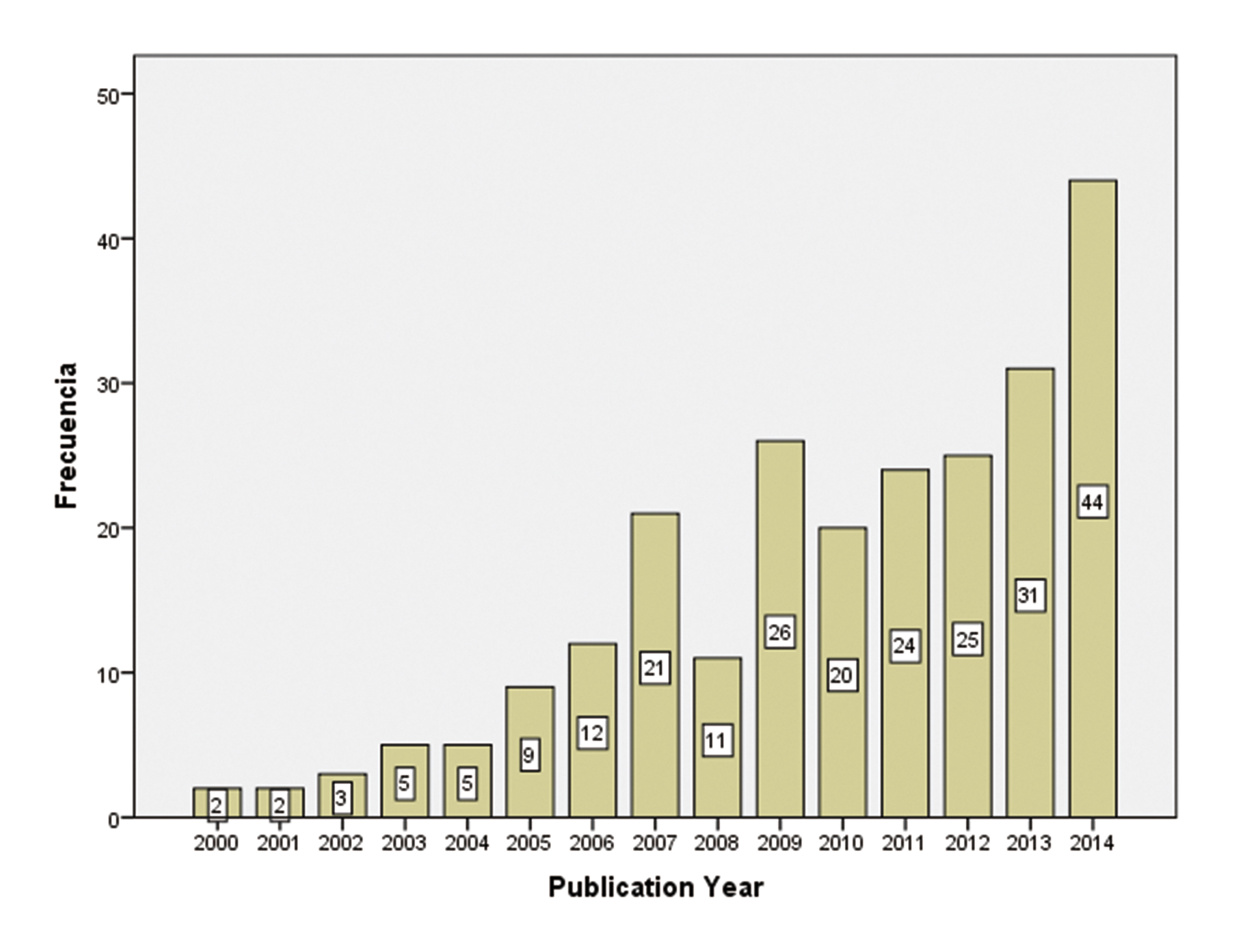 Artículos que emplean la base de datos de MARPOR publicados en ocho revistas de alto impacto (2000-2014)