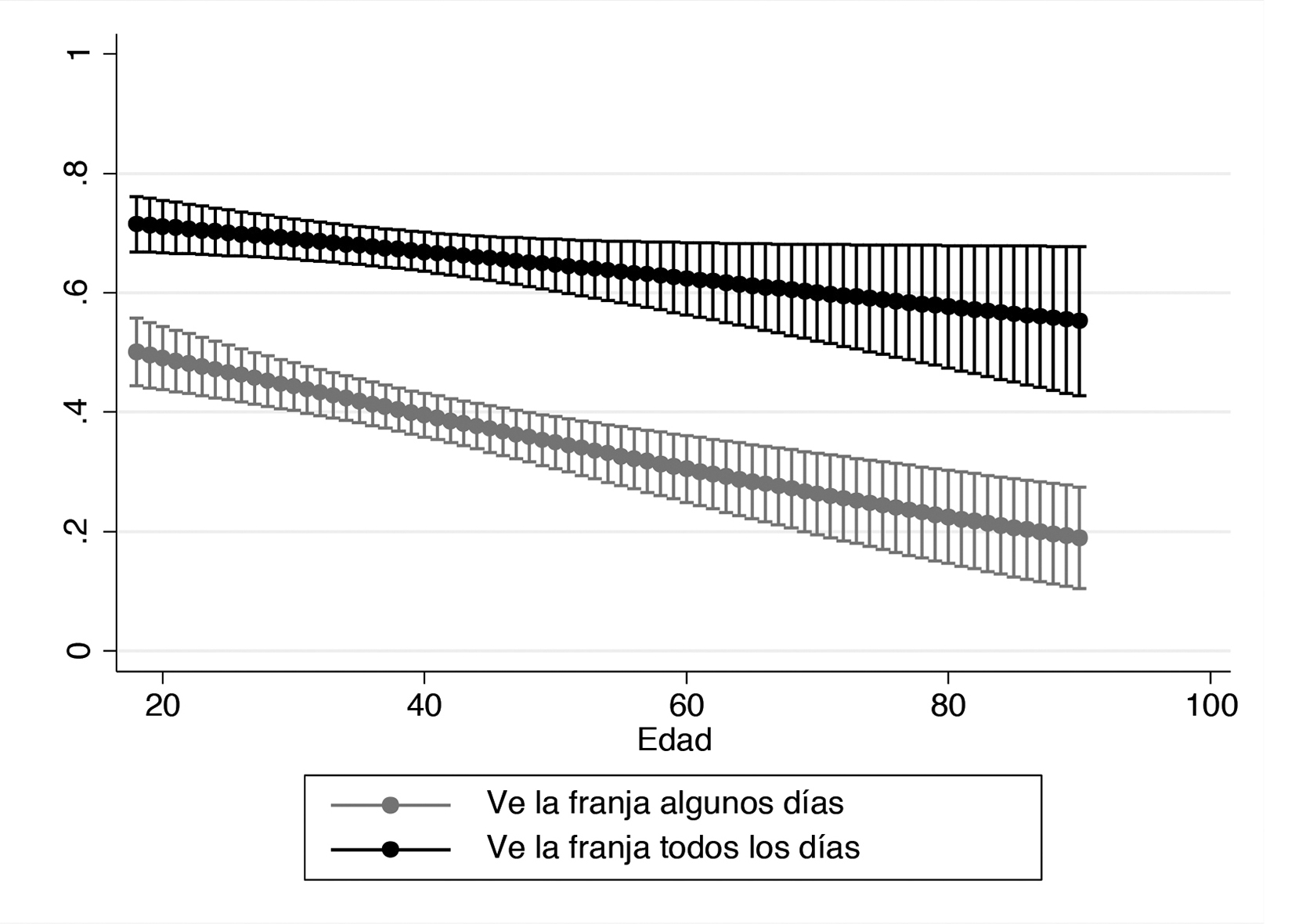 Estos resultados a nivel individual son congruentes con la evidencia recolectada a nivel comunal, lo que hace más robustas nuestras inferencias. Si bien existe literatura que ha enfatizado la continuidad de las preferencias electorales de los chilenos a pesar de la extensa dictadura, este trabajo muestra la composición de esas preferencias en el período más crítico de la historia reciente de Chile. Además, lo hace con encuestas que se aplicaron antes y después de la entrada en vigencia de la propaganda electoral televisiva, mostrando que los patrones de apoyo al «sí» y al «no» fueron constantes en todas las mediciones que hizo el CERC.