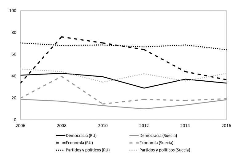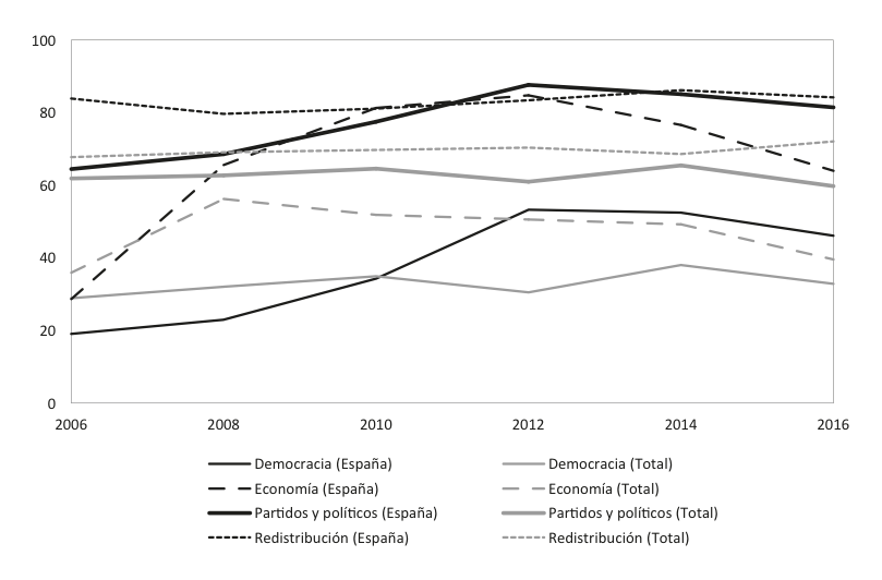 políticos, y altos niveles de insatisfacción con el funcionamiento de la democracia