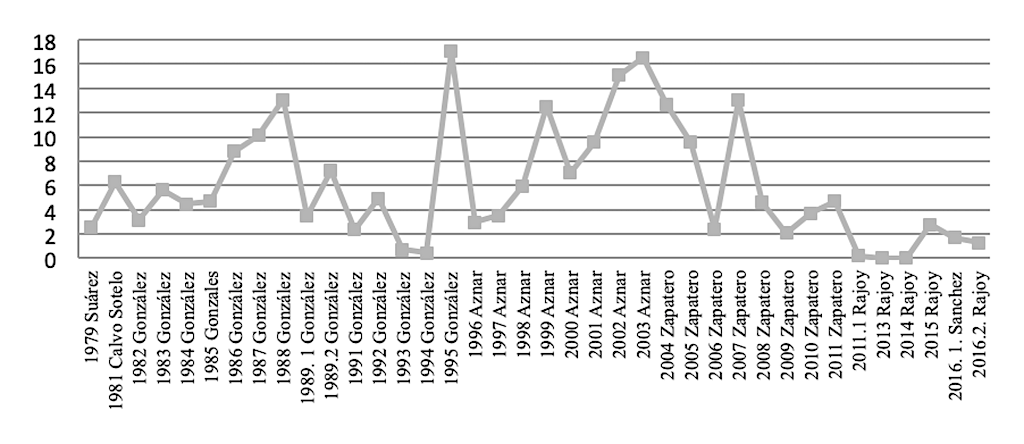 por lo que queda fuera del análisis. También lo hace la primera de Rajoy en 2016 por