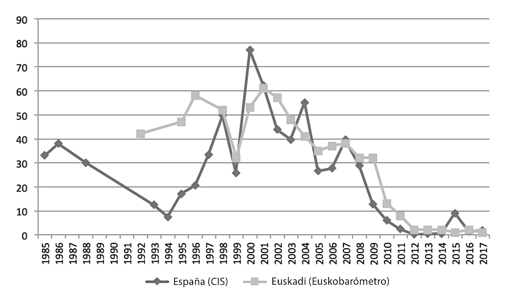 Fuente: elaboración propia a partir de los datos del CIS y del Euskobarómetro.