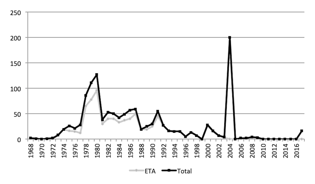 con lo que vendría después Datos obtenidos de The victims of ETA dataset del Instituto Juan March.