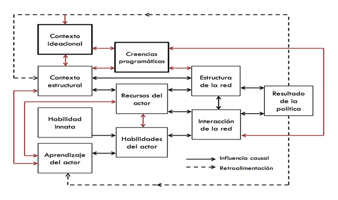 Siguiendo el modelo ideacional de Kisby ( Kisby, Ben. 2007. «Analysing policy networks, towards an ideational approach», Policy Studies, 28 (1): 71-90. Disponible en: