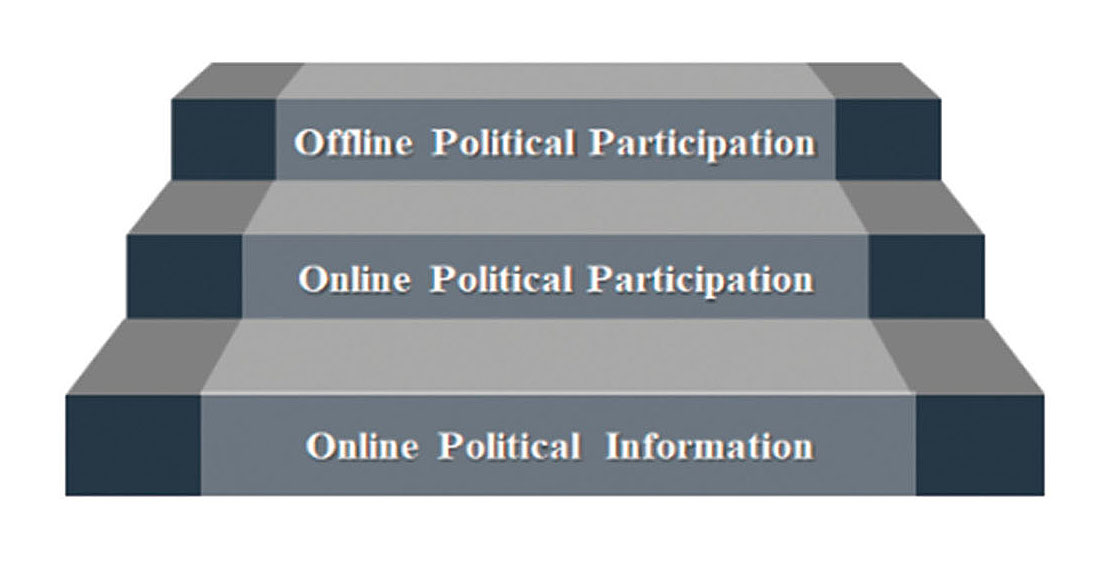 Based on these considerations, we develop the Social Media Political Participation Ladder, which identifies three stages or steps of political participation (Figure 1). The first step represents the various sources for acquiring information in social media platforms including news, commentaries and on-spot coverage of events taking place through live videos.