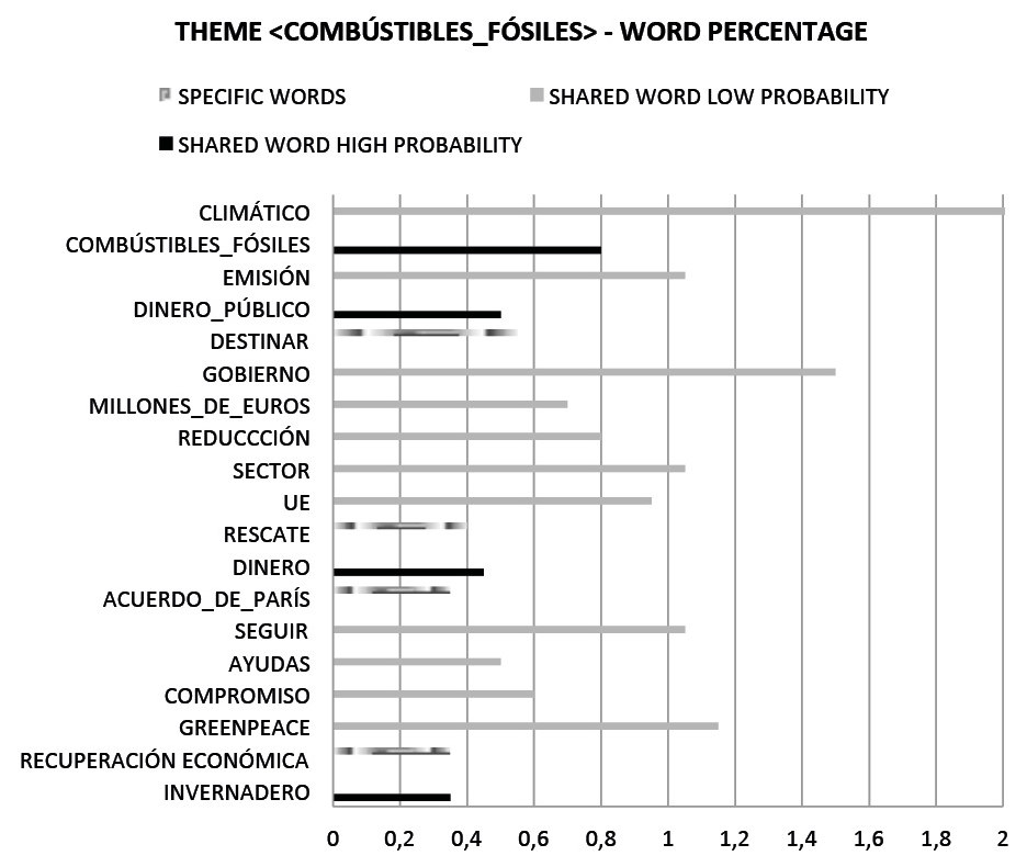 Temáticas emergentes del G5 durante la pandemia: Probabilidad de coincidencia de combustibles fósiles con otras palabras