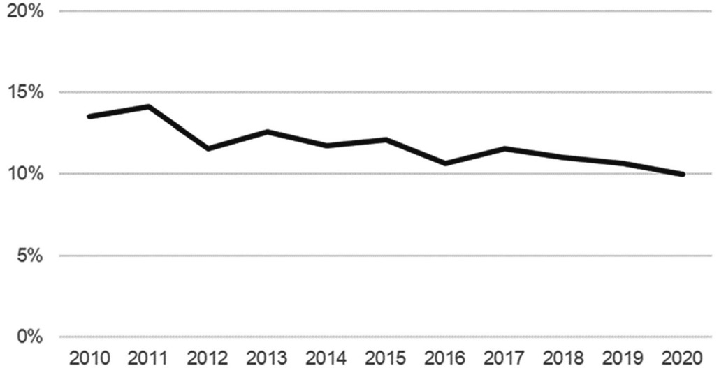 Porcentaje de electores autodenominados liberales, 2010-2020