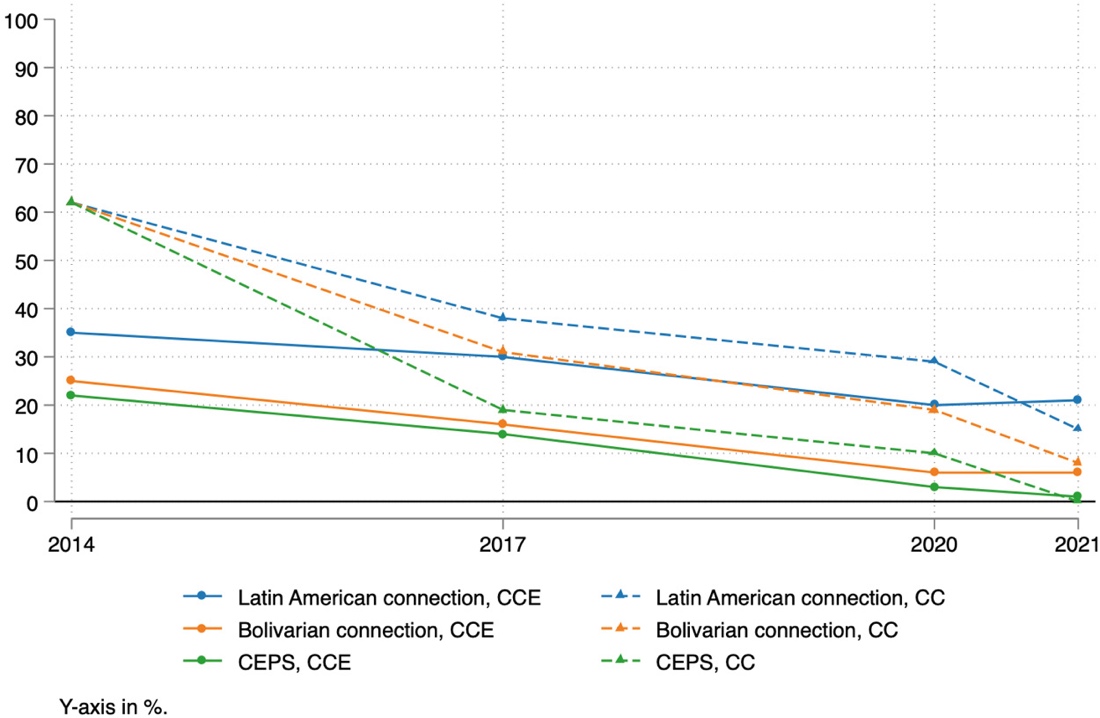 | Bolivarian connection (%) | 62 | 31 | 19 | 8 | |