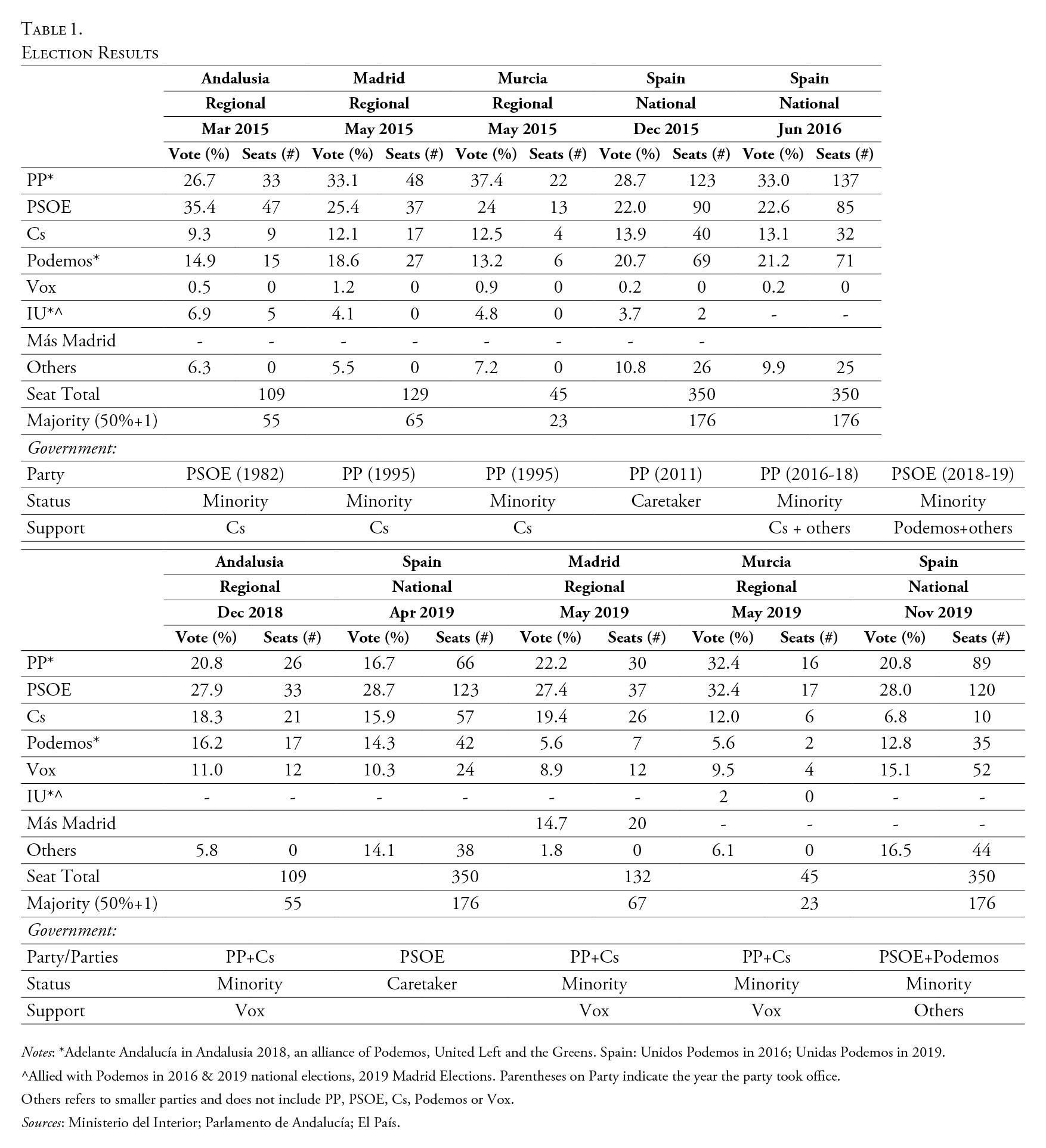 Simón, Pablo. 2020b. “Two-bloc logic, polarisation and coalition government: the November 2019 general election in Spain”, South European Society and Politics, 25 (3-4): 533-63. https://doi.org/10.1080/13608746.2020.1857085