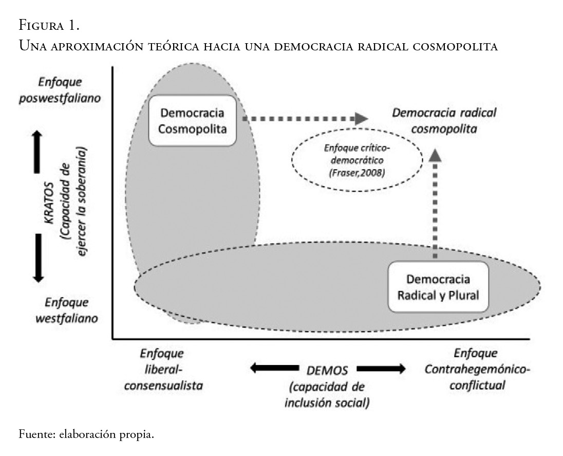 La globalización, con las interdependencias y los procesos trasnacionales asociados a ella, ha generado nuevos retos para las democracias contemporáneas. En muchas ocasiones, estos procesos generan un cierto “vaciamiento democrático”, al producir una pérdida del control de muchas decisiones políticas, así como cuestionan elementos asociados a la representatividad, la rendición de cuentas o la propia legitimidad en la que estas decisiones descansan. Todo ello, además, cercena los grados de autonomía y soberanía de las comunidades políticas delimitadas por los Estados, sometiéndolas a diversas tensiones. Una de las corrientes que han pretendido abordar este problema ha sido la denominada democracia cosmopolita. Sin embargo, esta visión ha mantenido una relación distante y crítica con otras propuestas teóricas que también persiguen un fortalecimiento de la democracia. Este es el caso de la democracia radical y plural, que ha señalado la limitada capacidad que presentan las propuestas cosmopolitas a la hora de ampliar y profundizar la democracia, al descansar en un consenso racional-liberal de carácter occidental. El presente artículo analiza si existe una incompatibilidad inherente entre democracia cosmopolita y democracia radical y plural o si, por el contrario, es posible que ambas corrientes puedan encontrar espacios de aproximación teórica que permitan articular respuestas más democráticas e inclusivas a los desafíos que plantea la globalización.