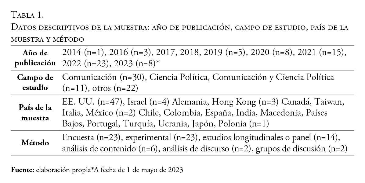La investigación sobre la polarización afectiva está en su apogeo. Las causas que intensifican o mitigan los climas de polarización afectiva en las democracias contemporáneas, así como sus consecuencias, siguen siendo objeto de debate. ¿Cuál es la relación entre los medios de comunicación de masas y sociales y los climas de polarización afectiva? Los medios de comunicación tradicionales y sociales están insertos en una macroestructura por la que circula la mayor parte de la información política que se puede consumir, por lo que es necesario examinar su papel. Esta revisión sistemática de la literatura aborda todos los artículos de la base de datos Web of Science sobre el tema sin restricciones (N=73). Tras la lectura de los artículos, se presentan las principales evidencias, tendencias, consensos y desacuerdos sobre el tema, así como recomendaciones para futuras investigaciones. Los resultados apuntan a efectos mediáticos limitados o mínimos y heterogéneos en una investigación muy centrada en los efectos polarizadores más que en los depolarizadores. También apuntan a una mayor heterogeneidad y moderación partidista de lo esperado en el consumo de información.