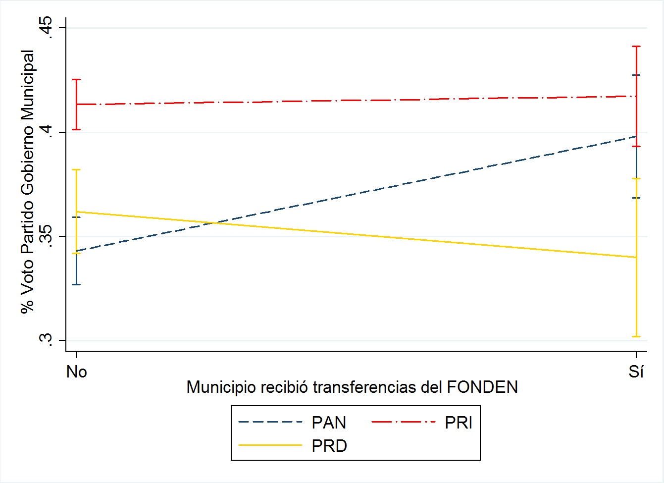 - Gráfico 2 Porcentaje de voto del partido en el gobierno municipal, de acuerdo con la recepción de transferencias del FONDEN en una Declaración de Emergencia