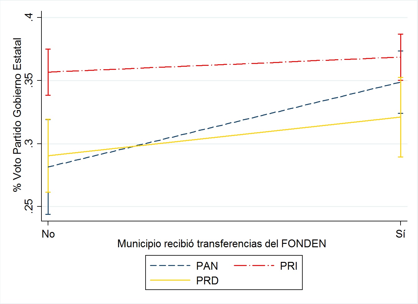 - Gráfico 3 Porcentaje de voto del partido en el gobierno estatal, de acuerdo con la recepción de transferencias del FONDEN en una Declaración de Emergencia
