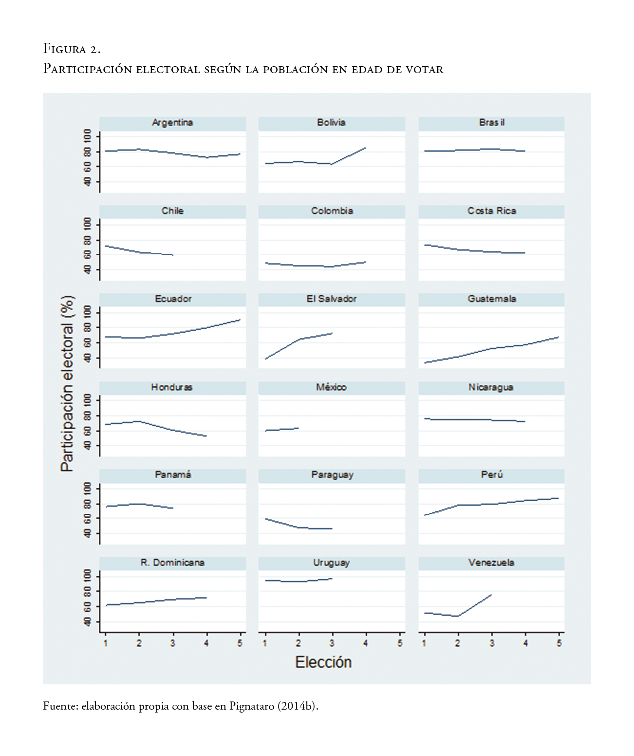 Schraufnagel, Scot y Barbara Sgouraki. 2005. «Voter Turnout in Central and South America», The Latin Americanist, 49: 39-69. Disponible en: https://doi.org/10.1111/j.1557-203X.2005.tb00064.x.