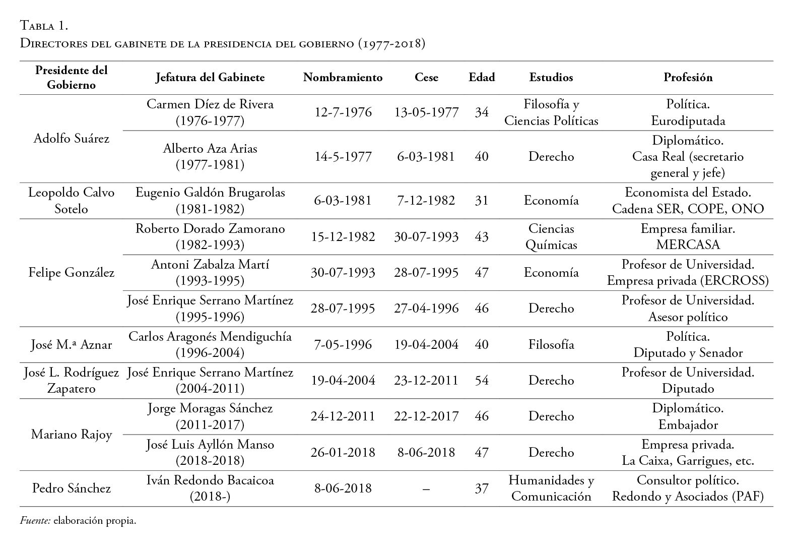 Olías, Blanca. 1994. «Los Gabinetes de los Presidentes del Gobierno en España», Política y Sociedad, 16: 257-272.