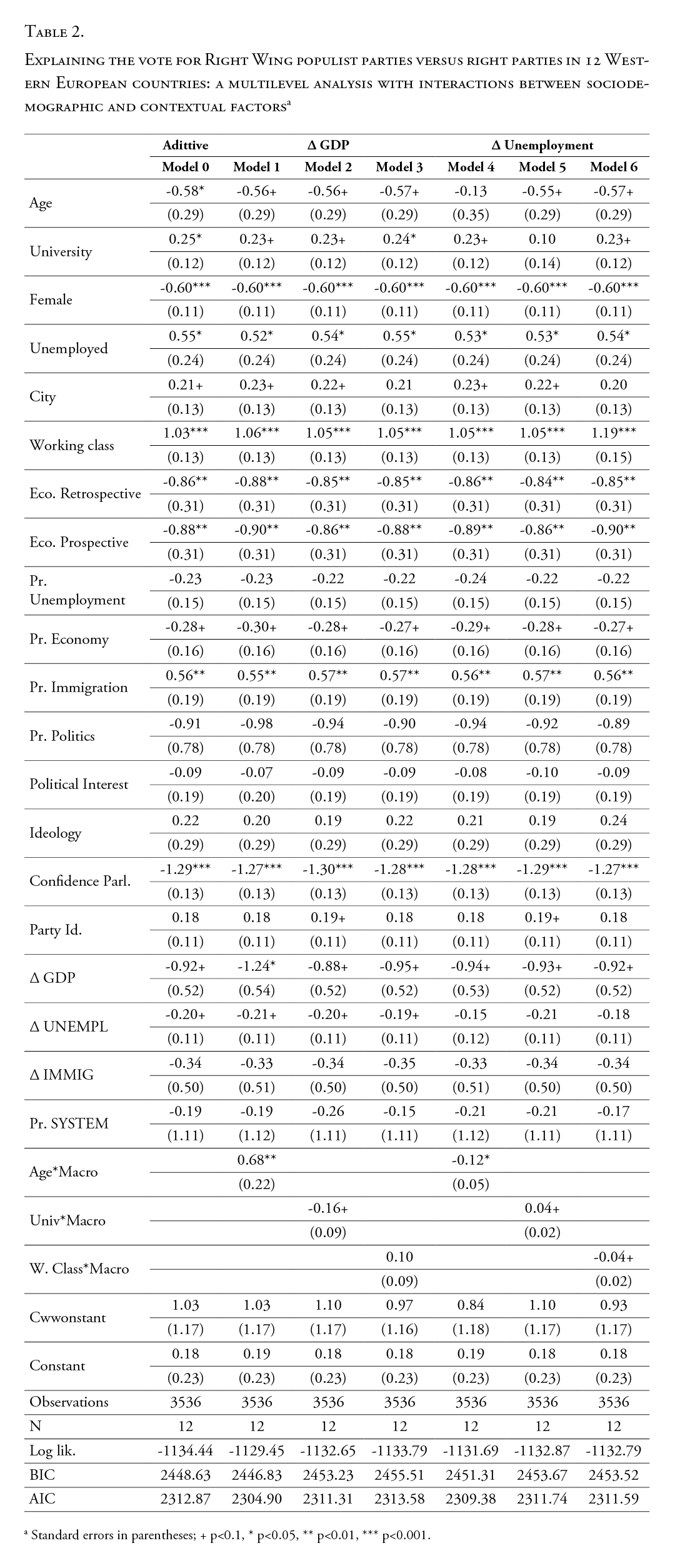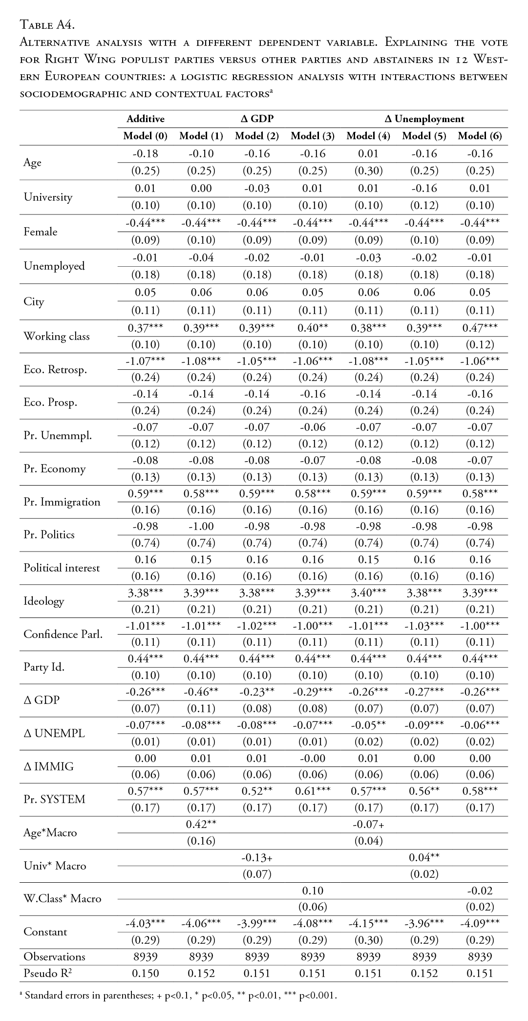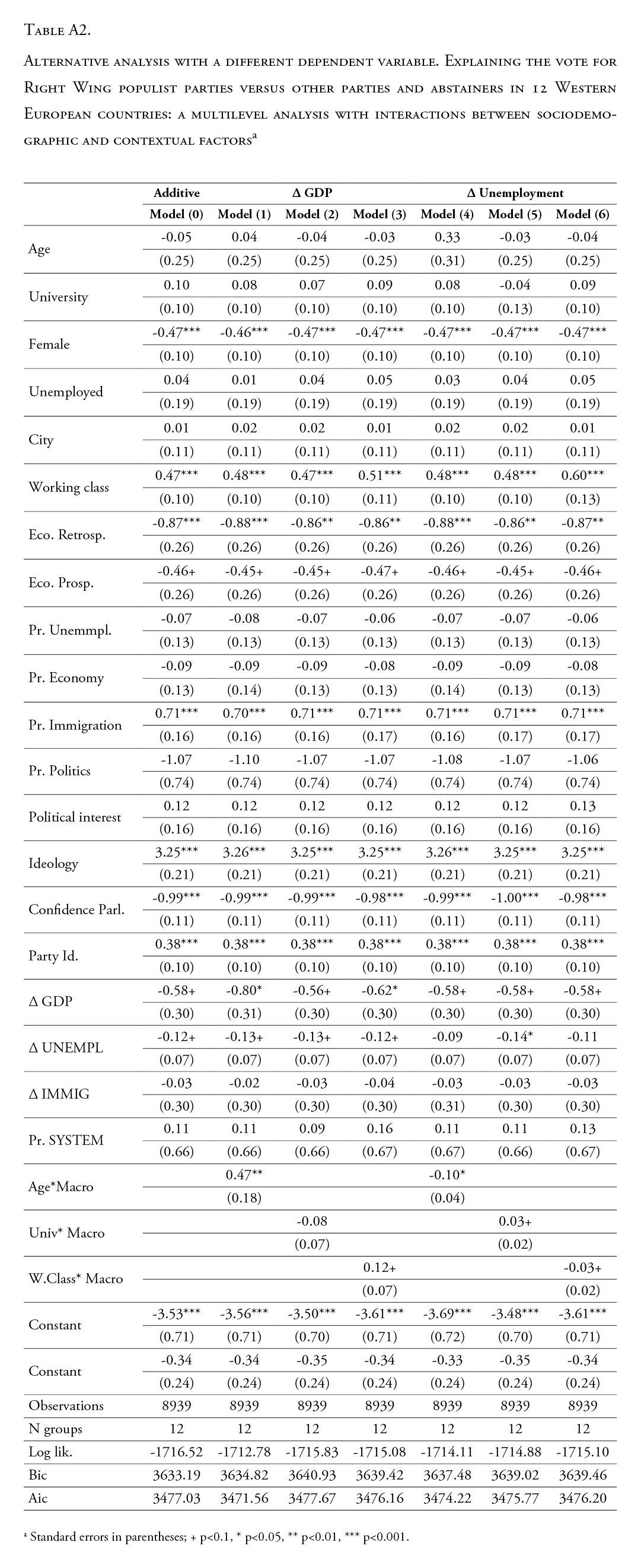 Los partidos populistas de derecha han obtenido unos resultados electorales sin precedentes durante la Gran Recesión en Europa. Mientras que algunos autores han adoptado una aproximación a nivel agregado para explicar su éxito, subrayando la importancia del contexto de crisis, otros se han centrado en explicaciones a nivel micro para analizar cómo los «perdedores de la globalización» (los mayores, con menor nivel educativo, y de clase social baja) comprenden la principal base electoral de estos partidos. Sin embargo, el éxito de estas formaciones ha sido mayor en los países menos afectados por la crisis y, en ciertos contextos, los llamados “perdedores” de la globalización no han sido la base electoral de estas formaciones. Utilizando datos individuales de doce países de Europa Occidental, provenientes de la base de datos European Election Studies (2014), en este trabajo demostramos que la combinación de estos dos conjuntos de explicaciones (a nivel macro y micro) es necesaria no solo por razones empíricas, sino también conceptuales, para poder entender el fenómeno. Mientras que el perfil general de esta familia de votantes tiende a ser de mayor edad, con menor nivel educativo y perteneciente a clases sociales bajas, en los países más afectados por la crisis los electores de los partidos populistas de derechas tienden a ser más jóvenes y con un nivel educativo más alto.Descargas