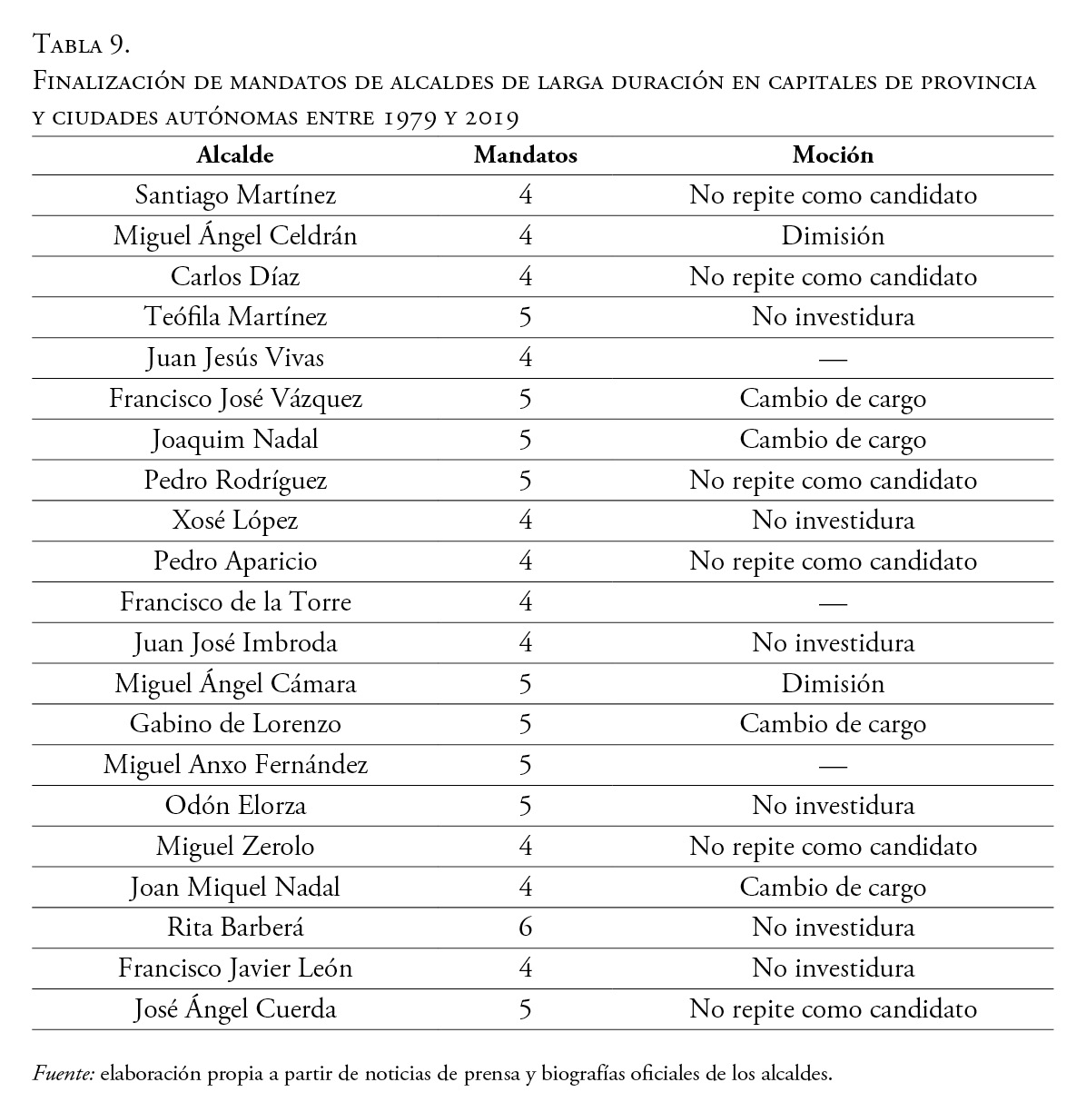 Los alcaldes de larga duración en el sistema de gobierno local en España pueden ser definidos como aquellos que han logrado al menos cuatro períodos en el cargo; por lo que constituyen agentes de especial interés para la Ciencia Política tras cuatro décadas de democracia municipal. A partir de un análisis de la literatura científica, esta nota de investigación elabora una propuesta sobre los factores individuales (autonomía, experiencia previa, género femenino y carrera política) y contextuales (tamaño de la población, moción de censura, tipo de investidura, crisis producidas por nacionalización de la vida local y transfuguismo) que afectan a la prolongación en el tiempo del liderazgo local. De este modo, analizamos la influencia de estos factores sobre la continuidad temporal de los regidores en una muestra compuesta por los alcaldes de larga duración elegidos en las capitales de provincia y ciudades autónomas entre 1979 y 2019. Finalmente, constatamos que la experiencia previa profesional, la carrera política local, el menor tamaño demográfico y el tipo de investidura son los factores que influyen positivamente para que los líderes locales se consoliden como alcaldes de largo recorrido.