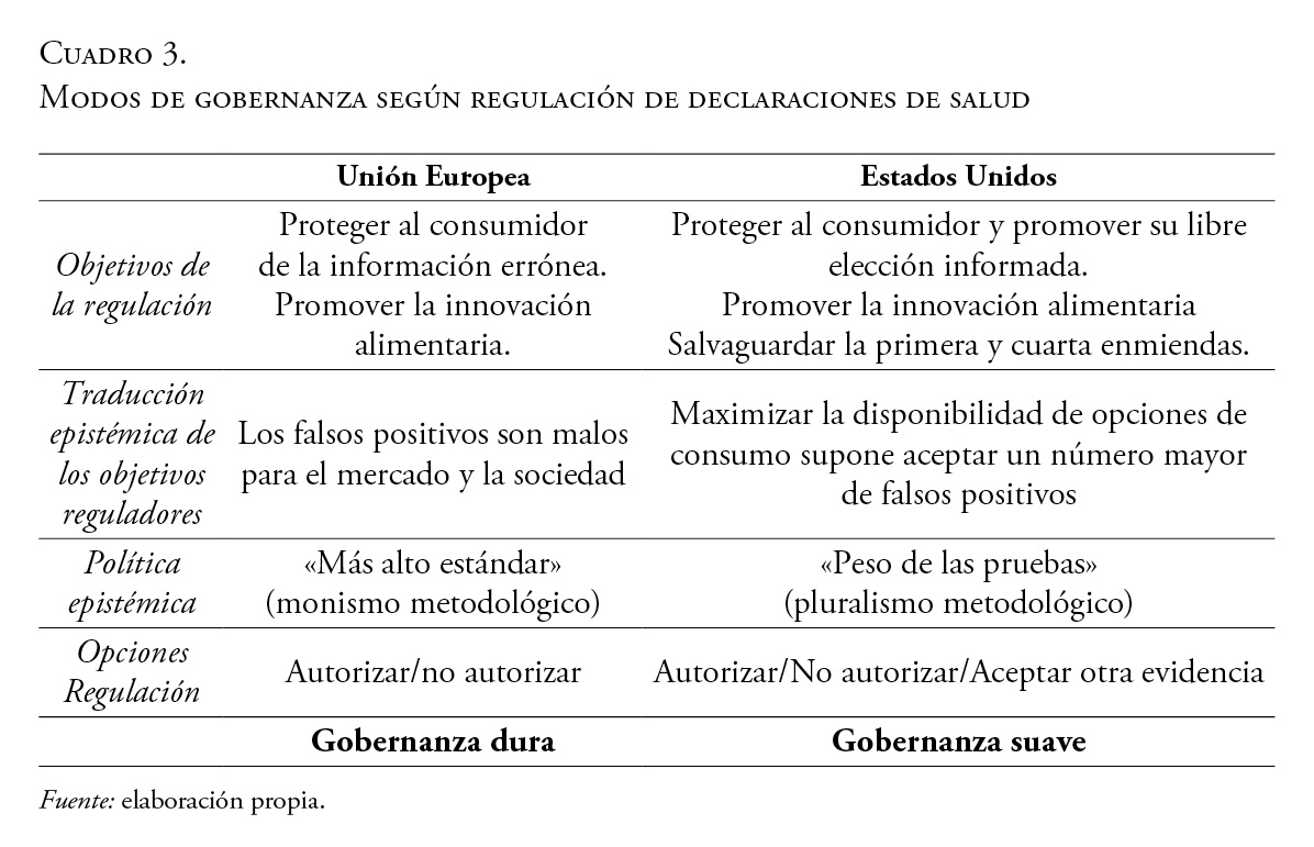 Políticas epistémicas y gobernanza. Un análisis comparativo de las regulaciones norteamericana y europea sobre declaraciones de propiedades saludables
