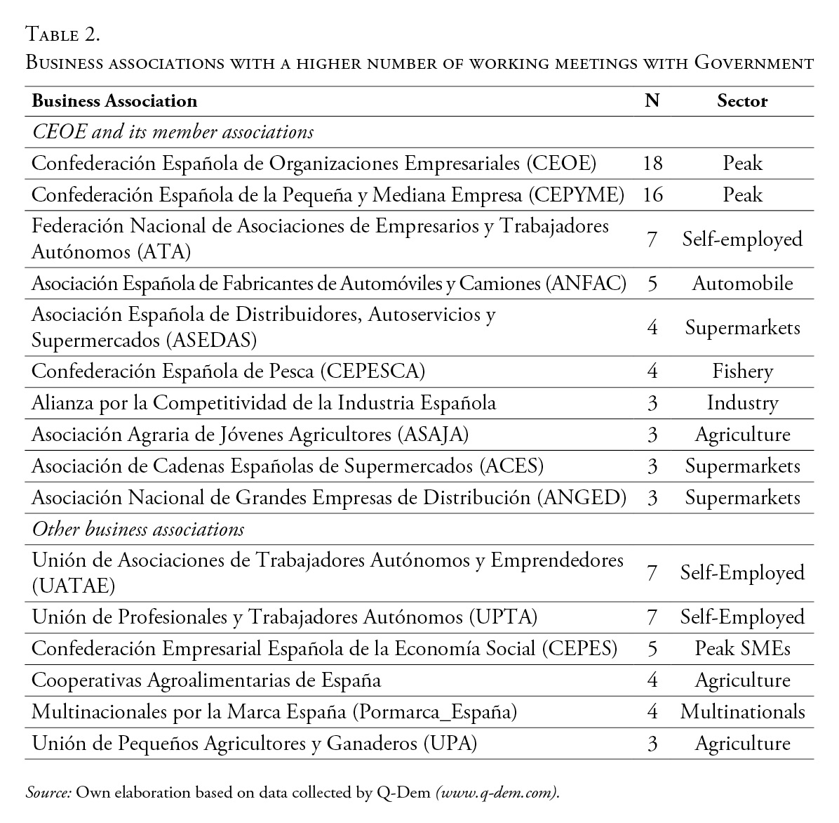 The representation of business interests during the COVID-19 pandemic in Spain