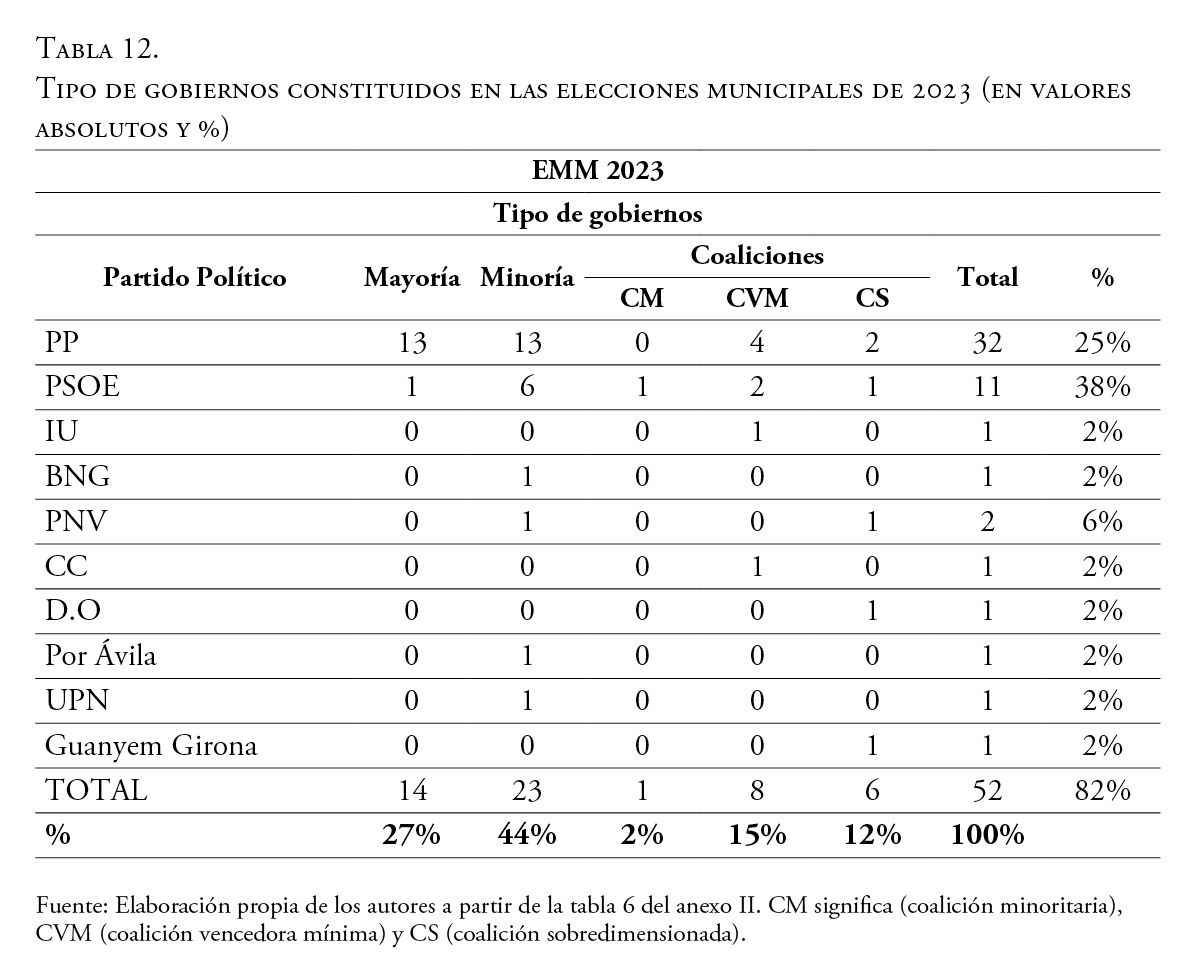 La configuración política del poder en el ámbito local español. Transformaciones y tendencias durante dos décadas (2003-2023)