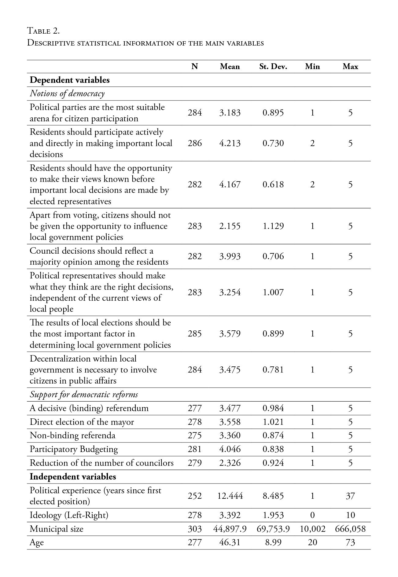 Exogenous and endogenous determinants of Spanish mayors’ notions of democracy: a multilevel regression analysis