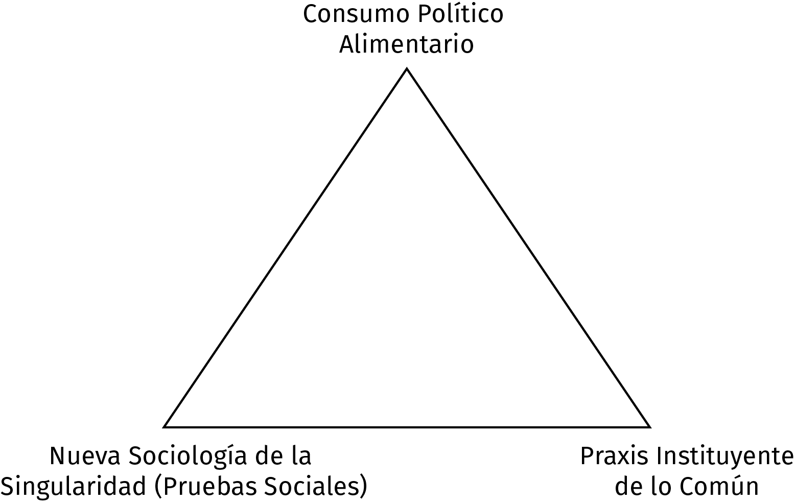 La nueva sociología de la singularidad (Figura 3) muestra que una de las principales pruebas sociales, abordada singularmente, es el CPA. El tercer vértice de dicha figura es un espacio propositivo que nace de aquél, del consumo crítico, llegando hasta una configuración colectiva garantizada institucionalmente que es participada y codirigida por la ciudadanía, por los consumidores conscientes.
